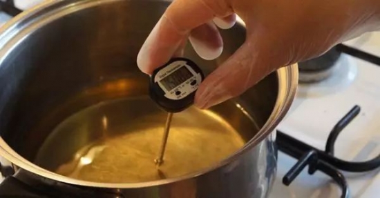 因此,油炸溫度以油五六成熱時為佳,大約為140~180攝氏度,這個時候油面波動,略有少量青煙升起。