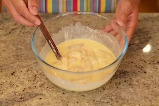 但淀粉糊一定要調勻,如果有未調開的淀粉疙瘩,在炸制時容易迸爆,油會濺出鍋外,導致燙傷。